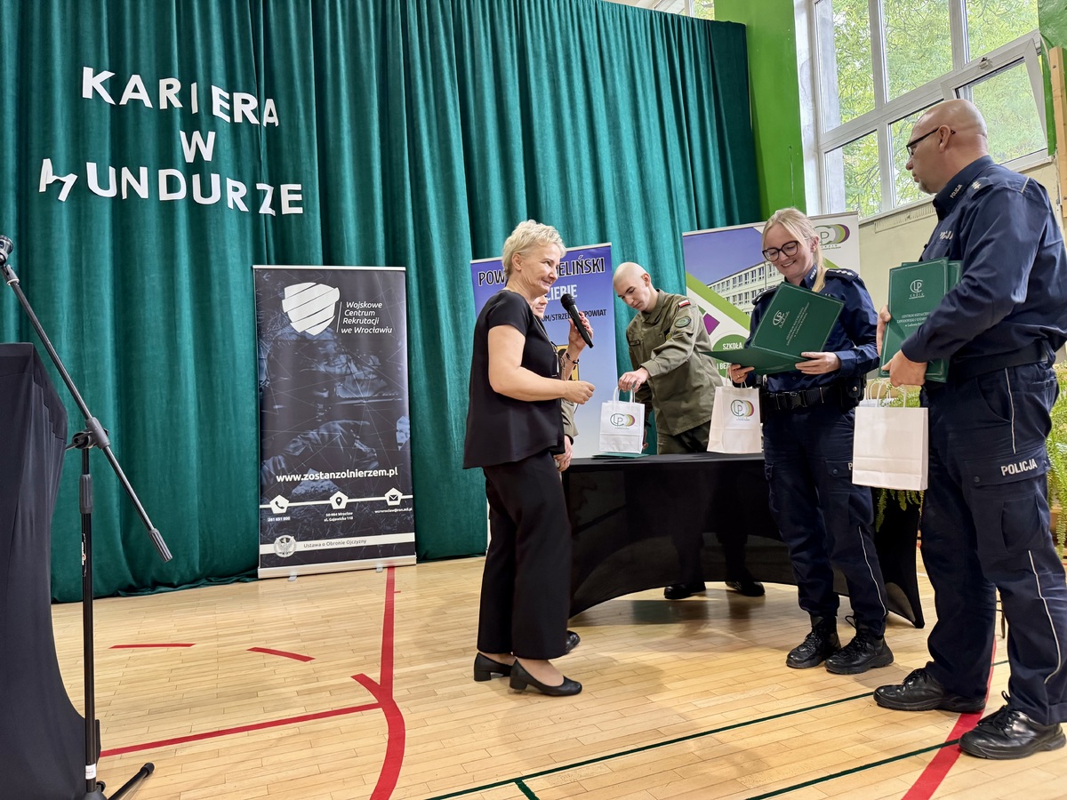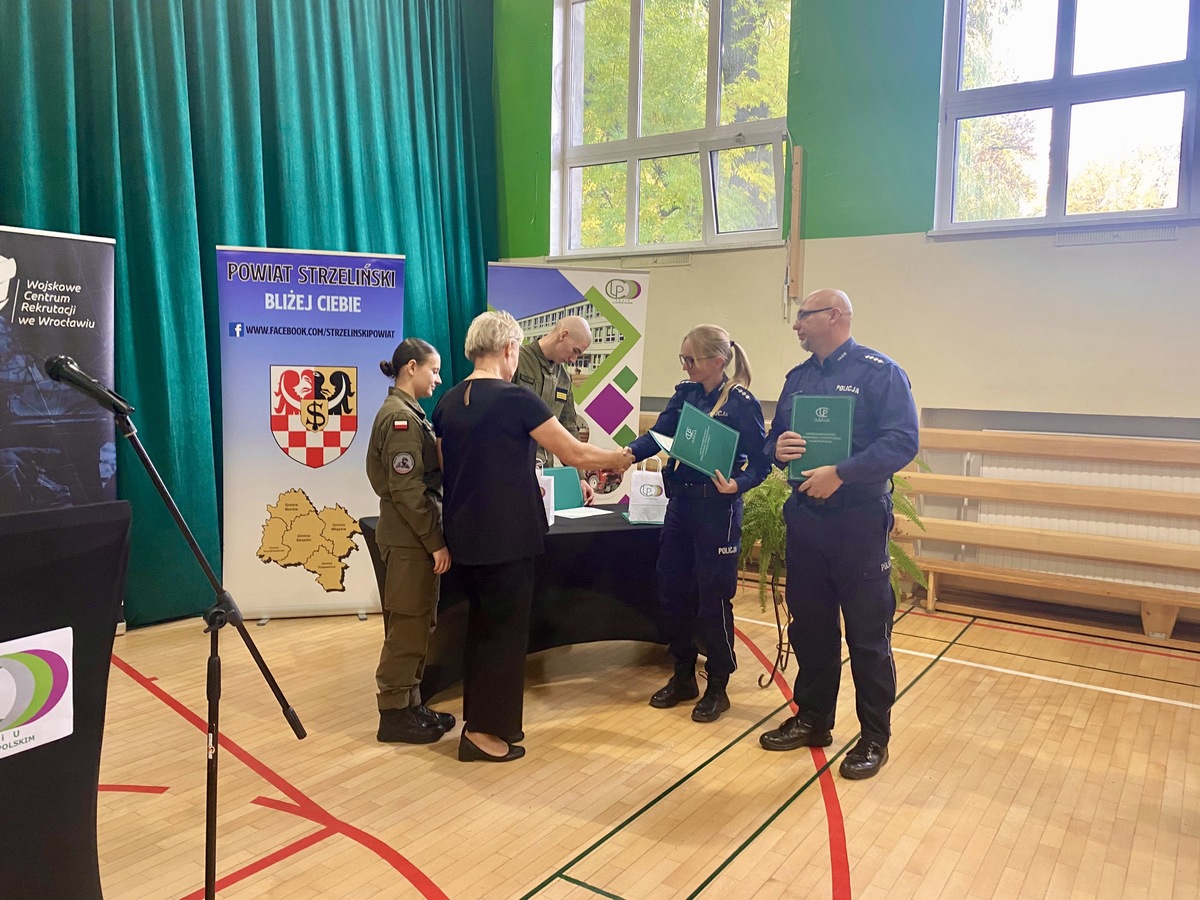 W konferencji uczestniczyli również przedstawiciele Służby Więziennej z Zakładu Karnego w Strzelinie, Straży Granicznej, Wojska Polskiego oraz Państwowej Straży Pożarnej, którzy przybliżyli młodzieży charakter swojej pracy i zasady naboru do poszczególnych służb.