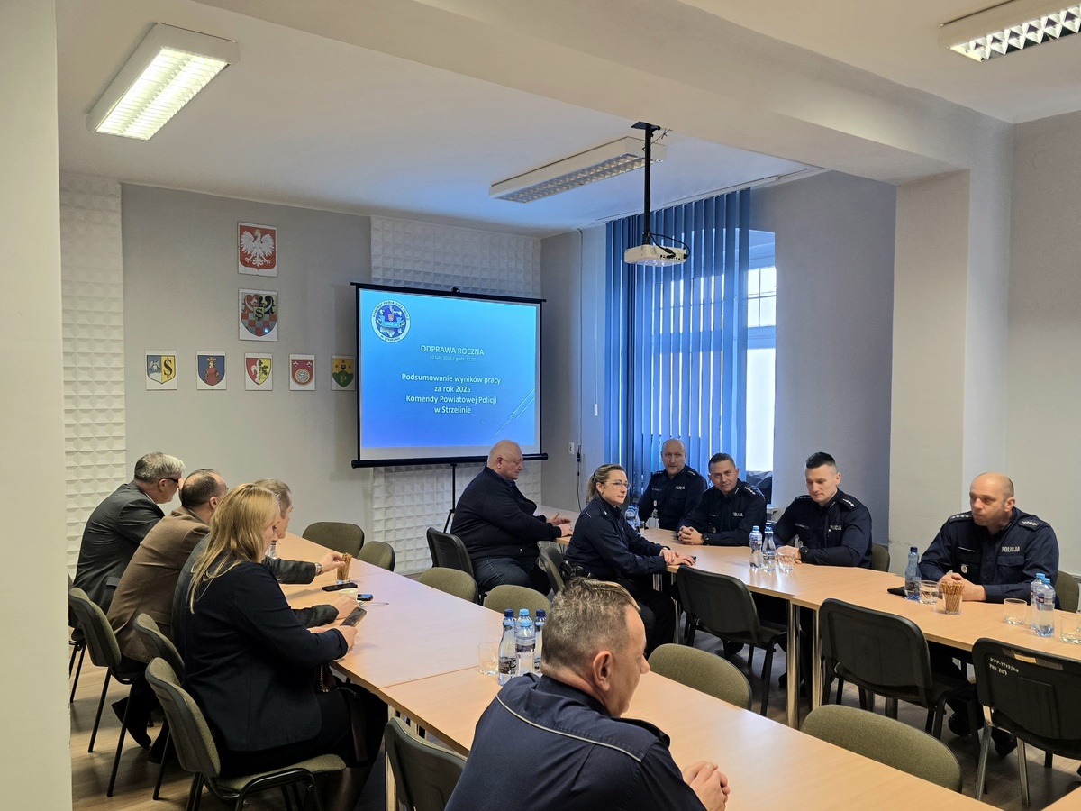 10 lutego w sali odpraw Komendy Powiatowej Policji w Strzelinie odbyła się odprawa roczna podsumowująca pracę strzelińskich policjantek, policjantów i pracowników cywilnych w minionym 2025roku.